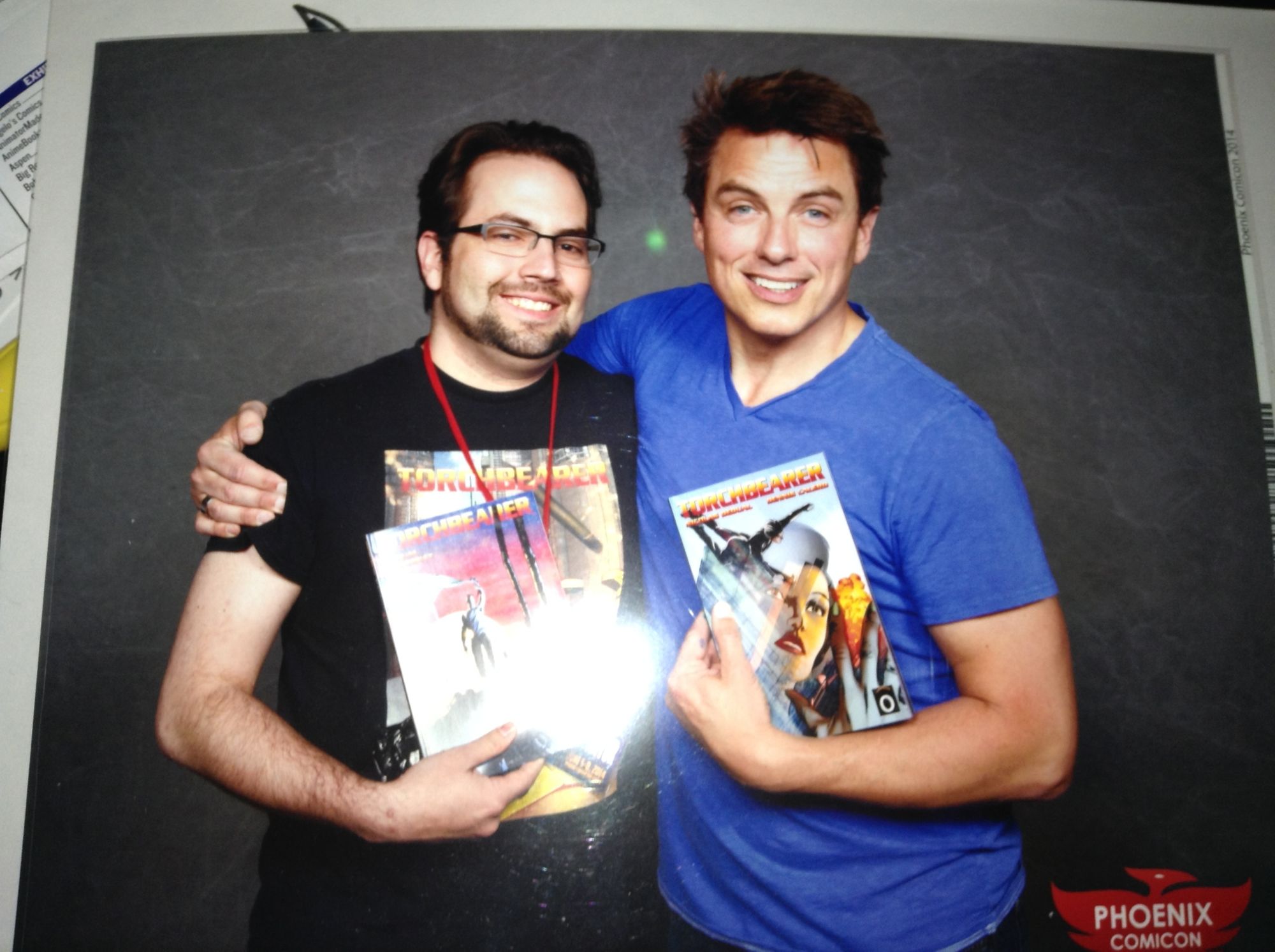 Yep. That last one is a picture of John Barrowman holding his own copies of Torchbearer. Needless to say, we were more than glad to furnish him with his own copies 🙂