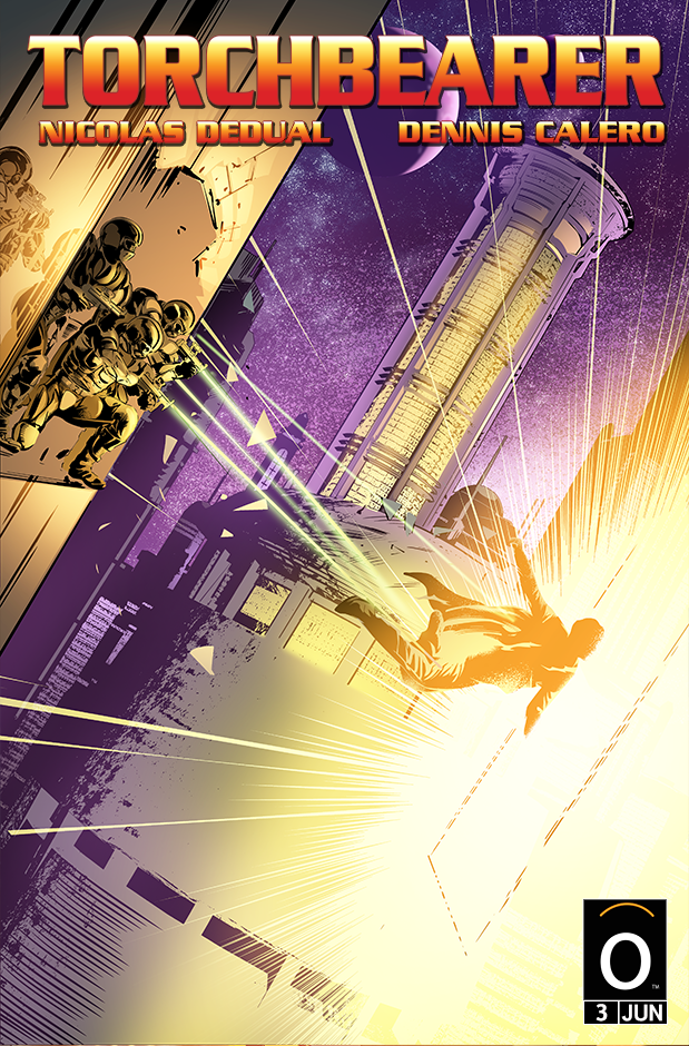 Dennis Calero's heavy inks lend greatly to all the sneaking around that is happening. He's really brought to life the futuristic world that Dedual has crafted in TORCHBEARER. I'm very much looking forward to seeing more from this team.